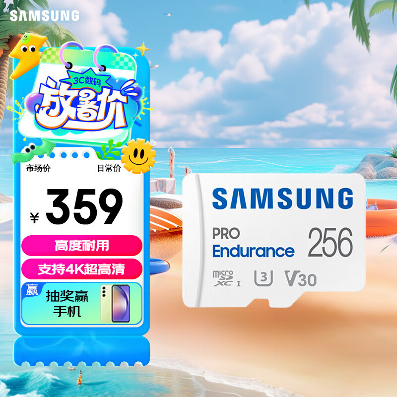 三星(SAMSUNG)256GB TF(MicroSD)存储卡 Endurance耐久卡 U3 V30 行车记录仪 安防监控摄像头内存卡 读速100MB/s价格:359.00元!