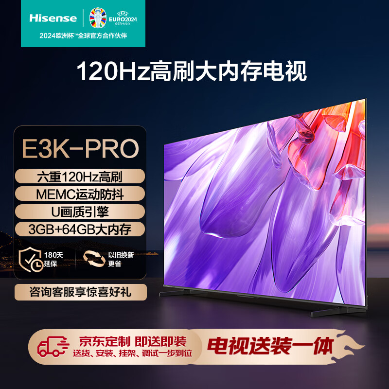 海信电视55E3K-PRO【送装一体版】55英寸 MEMC防抖 U画质引擎 智慧屏 液晶智能平板电视机价格:2087.00元!