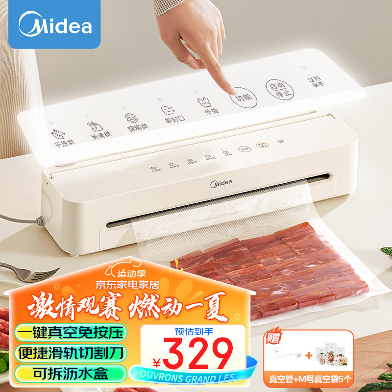 美的(Midea)真空封口机 家用小型全自动真空包装机 多功能食品塑封机 大功率大吸力真空保鲜打包机 MJ-KF51价格:329.00元!