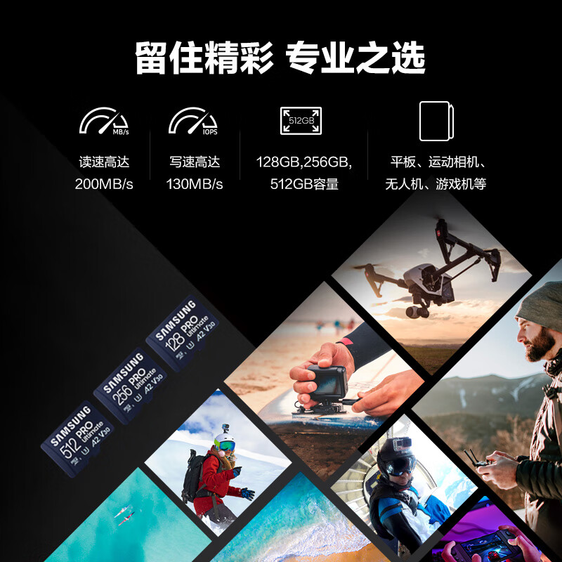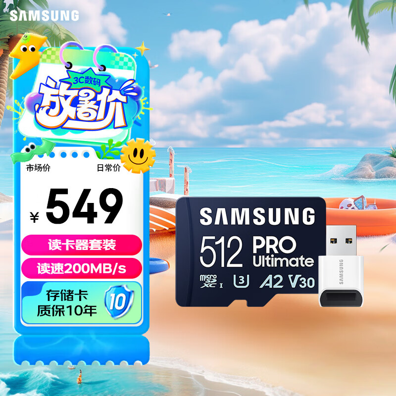 三星(SAMSUNG)512GB TF(MicroSD)存储卡套装Ultimate U3 A2 V30兼容无人机运动相机 读速200MB/s写速130MB/s价格:549.00元!