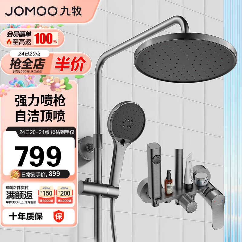 九牧(JOMOO)淋浴花洒套装枪灰自动除垢喷枪淋浴器36633-526/HBS-1价格:949.00元!