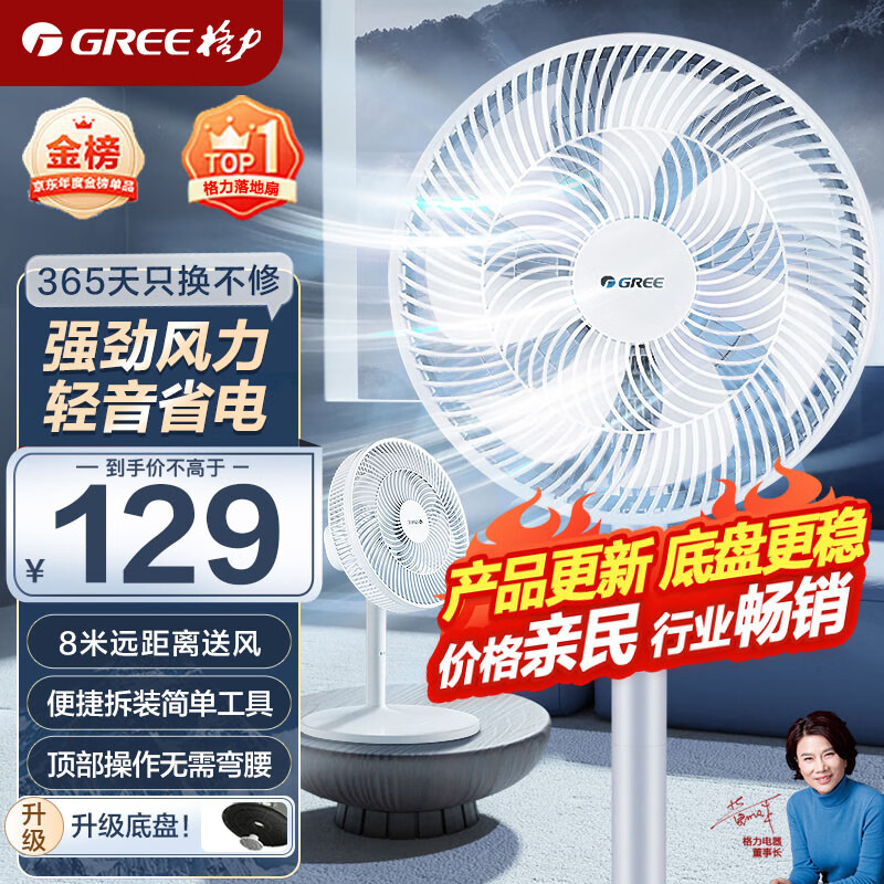 格力(GREE)【全新升级】七叶轻音立式电风扇家用柔风落地扇台式桌面风扇大风量节能宿舍电扇 FS-3015h7价格:129.00元!