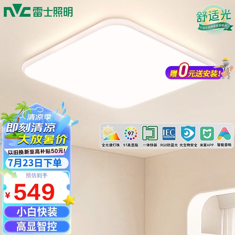 雷士(NVC)LED吸顶灯 现代简约卧室书房餐厅小白灯具全光谱舒适光方形灯饰价格:549.00元!