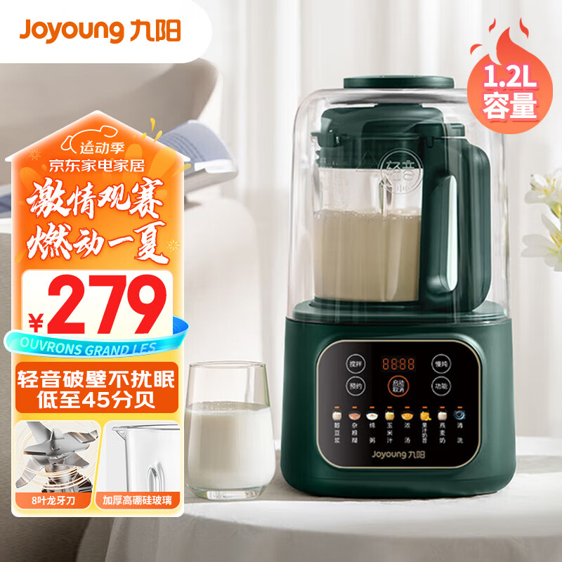 九阳(Joyoung)低音破壁机家用豆浆机 柔音降噪榨汁机料理机 纤薄精巧小容量 破壁机L12-P188价格:279.00元!