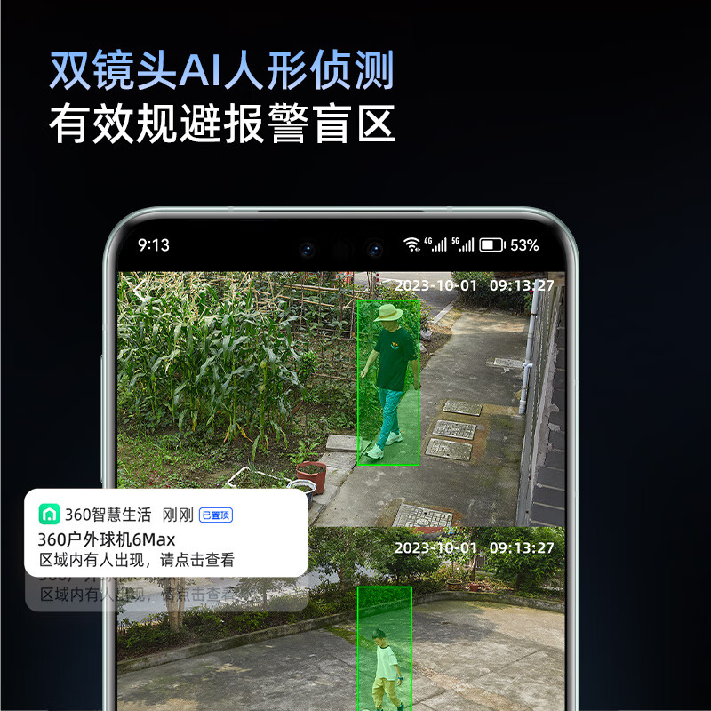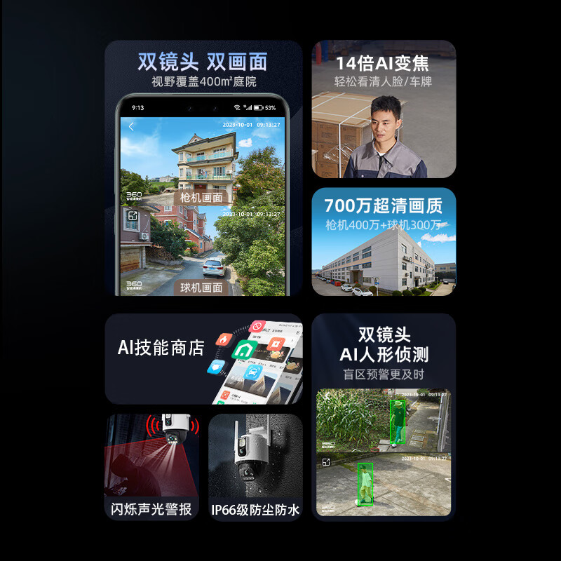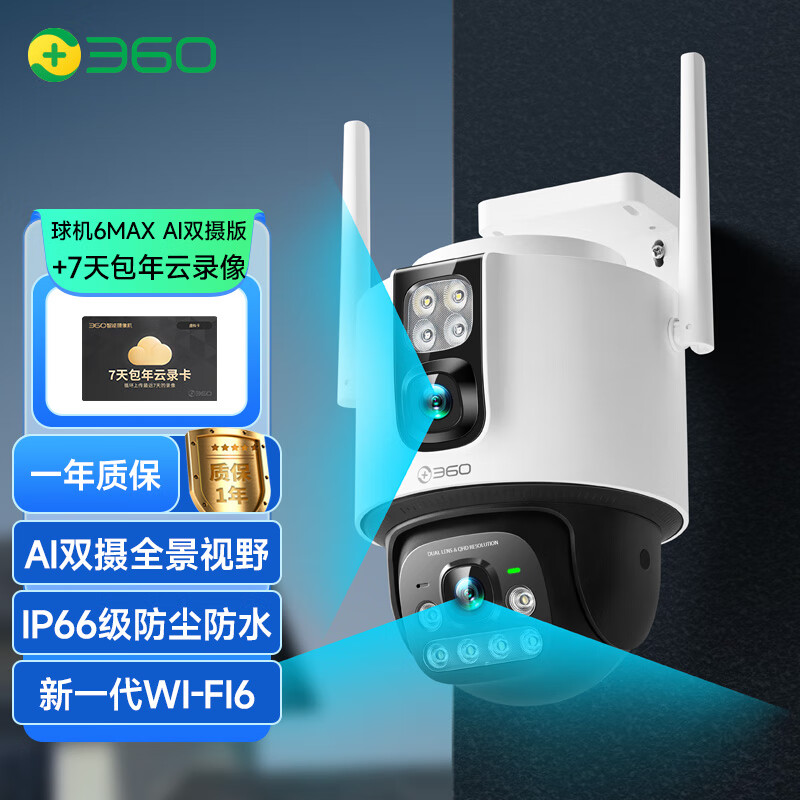 360户外球机6Max 700万超清双摄 家用无线监控器手机远程家庭监控360度全景室外摄像头双画面防水夜视价格:507.00元!