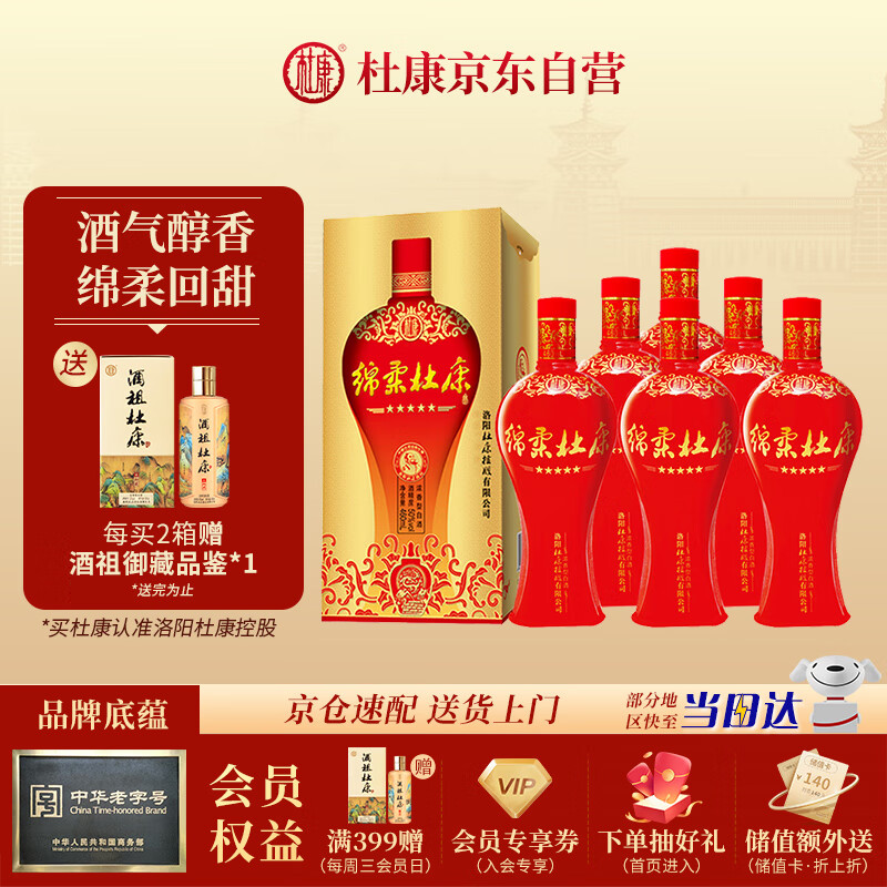 杜康绵柔五星浓香型白酒50度460ml*6整箱装婚宴酒聚会自饮纯粮口粮酒价格:231.00元!