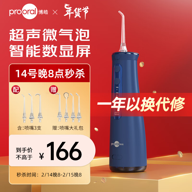 博皓(prooral)手持立式冲牙器水牙线洁牙器大水箱智能屏显 5025pro釉蓝 情人节礼物送男友价格:179.00元!