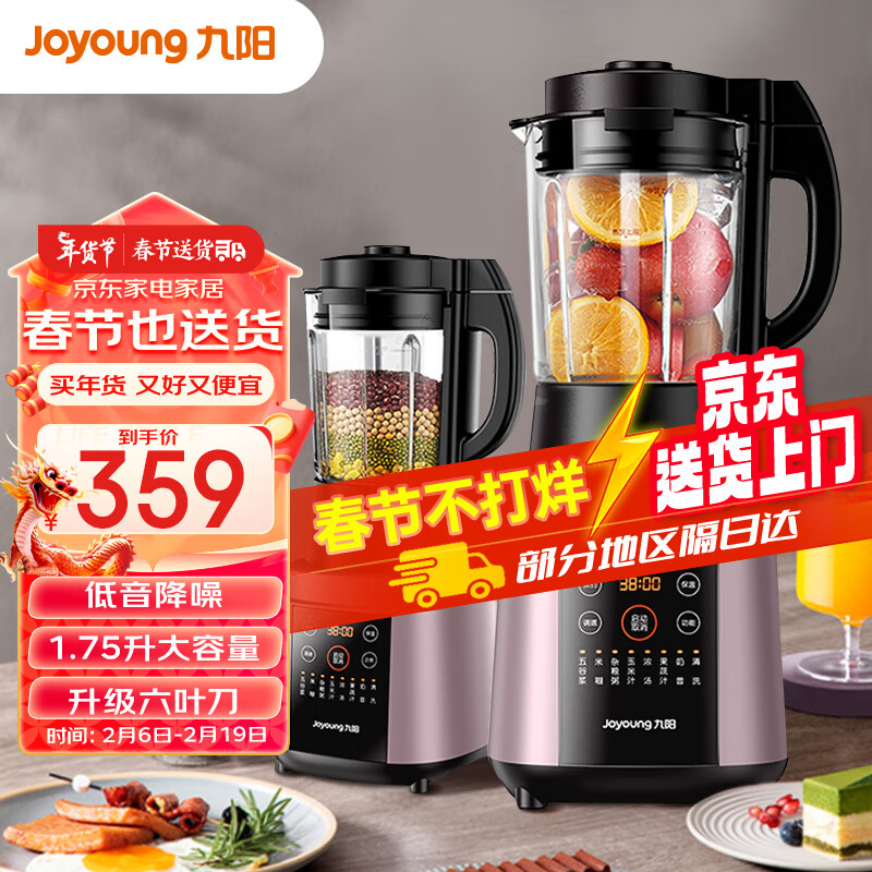 九阳(Joyoung)破壁机家用三重降噪加热豆浆机果汁机早餐机榨汁机辅食机1.75L大容量L18-Y928S价格:359.00元!