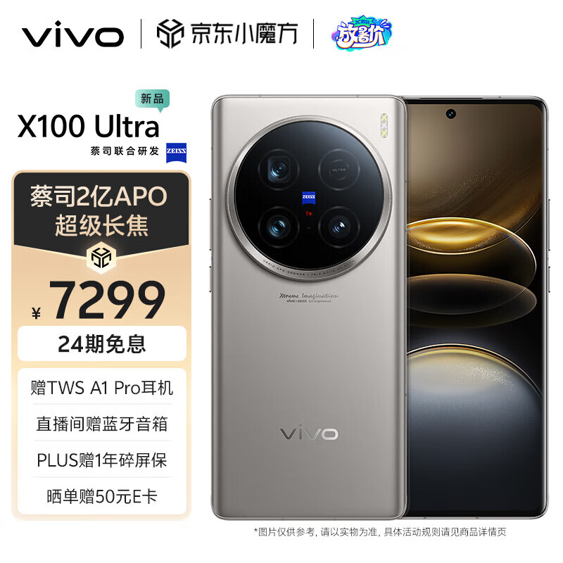 vivo X100 Ultra 16GB+512GB 钛色 蔡司2亿APO超级长焦 一英寸云台级主摄 蓝图影像 拍照 手机价格:7299.00元!