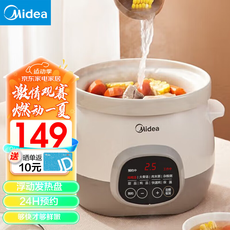 美的(Midea)电炖锅 家用电炖蛊 多功能煮粥神器养生煲炖汤锅电砂锅白瓷内胆 MD-DG30E201 3L价格:189.00元!