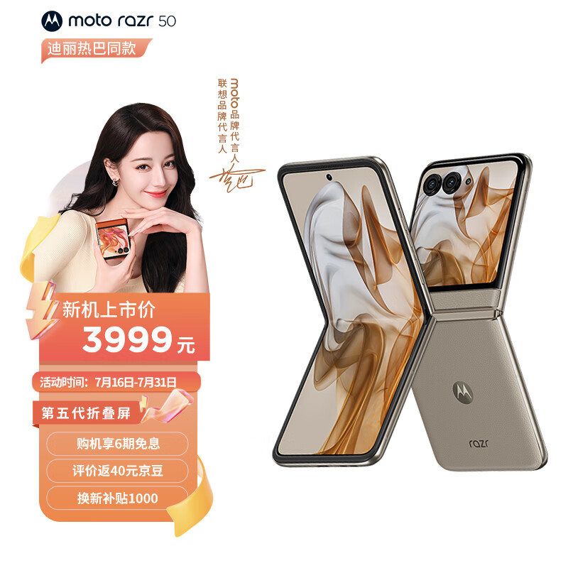 摩托罗拉 联想moto razr 50 3.6英寸大外屏 IPX8抗水 60万次折叠认证 第五代折叠屏 5GAI手机 12+512大象灰价格:3999.00元!