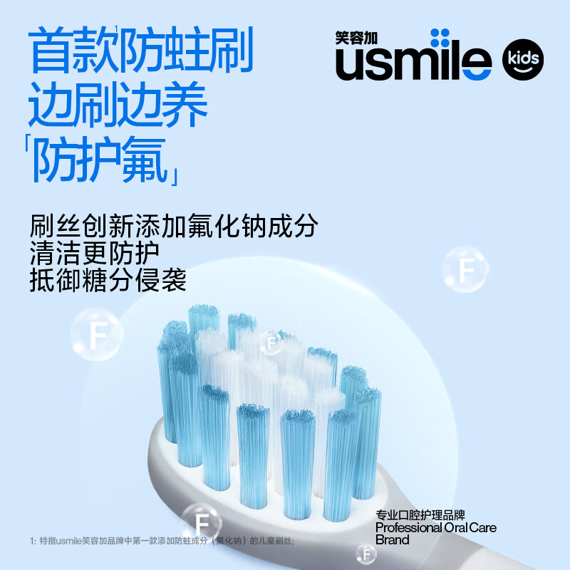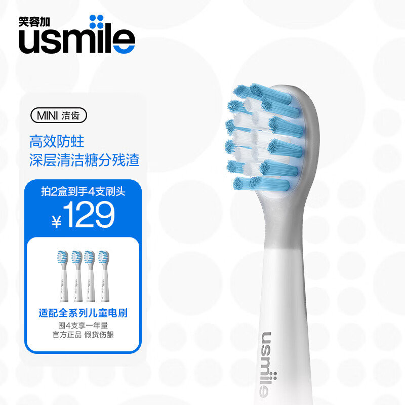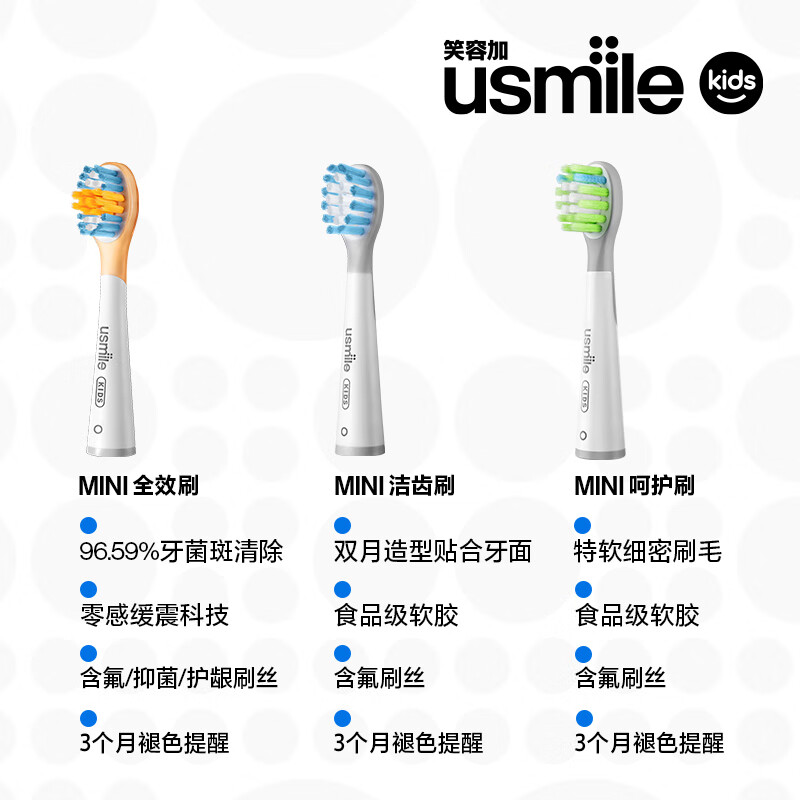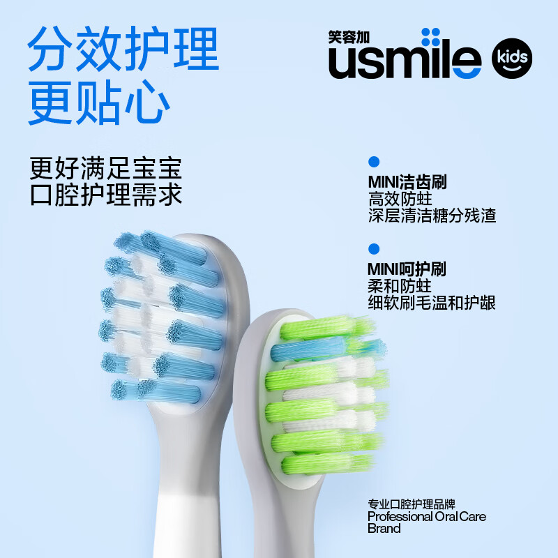 usmile笑容加 电动牙刷头 儿童基础蓝灰洁齿款-2支装 适配usmile儿童牙刷价格:69.00元!