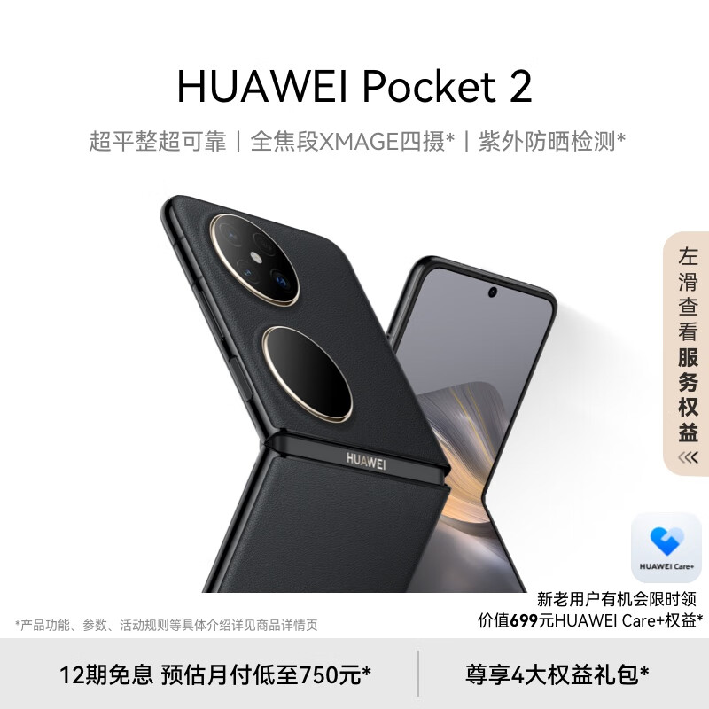 HUAWEI Pocket 2 超平整超可靠 全焦段XMAGE四摄 12GB+1TB 雅黑 华为折叠屏鸿蒙手机价格:8999.00元!