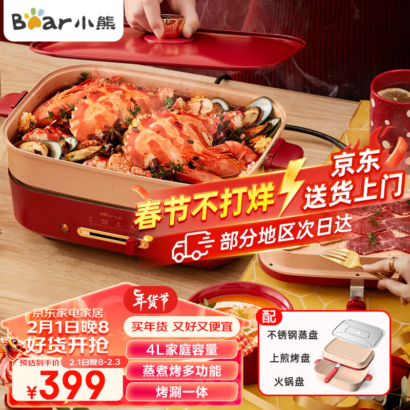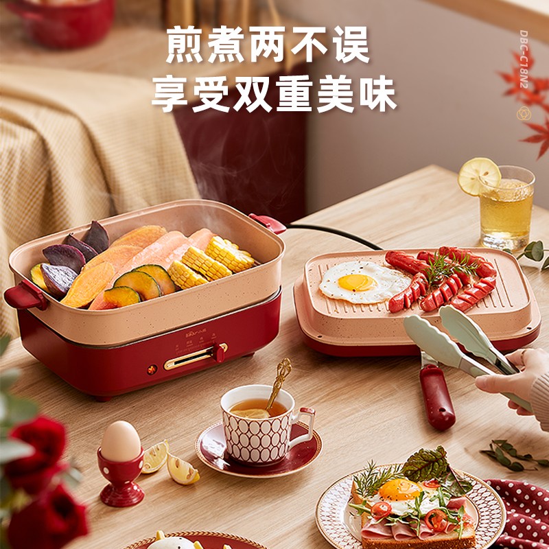 小熊(Bear)多功能锅 料理锅 家宴锅火锅专用锅多用途锅烤肉锅 家用电火锅蒸煮煎烤涮炒烙一体网红款 C18N2 4L价格:399.00元!