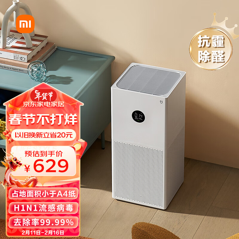 米家 小米空气净化器4lite 除甲醛除菌除异味 空气伴侣 除PM2.5 轻音设计 米家APP互联 AC-M17-SC价格:599.00元!