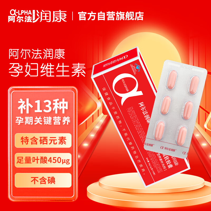 阿尔法润康孕妇维生素备孕叶酸补钙铁锌硒多种维生素矿物质1g/粒*90粒(30天量)怀孕产后孕中期营养素女士价格:549.00元!