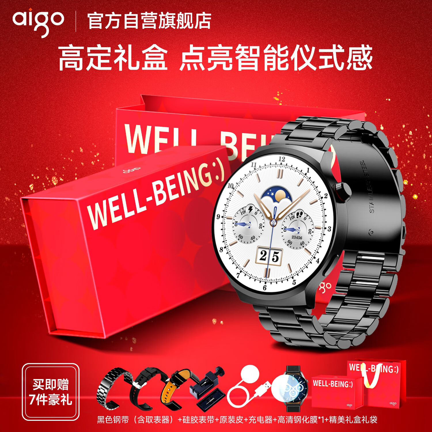 爱国者(aigo)智能手表V8男款健康监测血压心率多功能通话圆盘运动手表 黑色价格:528.00元!