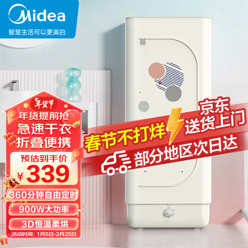 美的(Midea) 烘干机家用 干衣机儿童衣服暖风烘衣机便携折叠风干机20斤大容量衣物消毒机 香薰除臭祛味 MHJ70-02LW价格:338.00元!