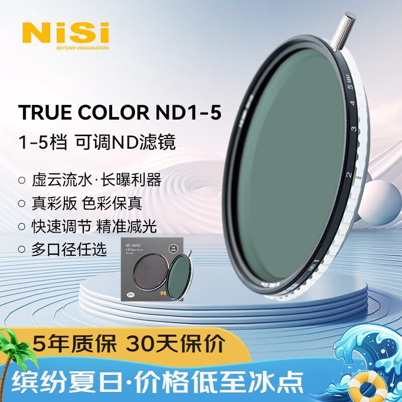 耐司(NiSi)可调减光镜 True Color ND1-5 72mm 真彩ND镜 1档-5档 单反微单相机人像风光摄影价格:698.00元!