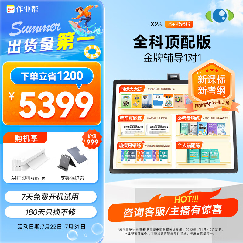 作业帮AI学习机X28金牌辅导学练版 小学到高中学习平板电脑 教材同步学练机 第3代护眼屏13.7'' 8+256G价格:5399.00元!