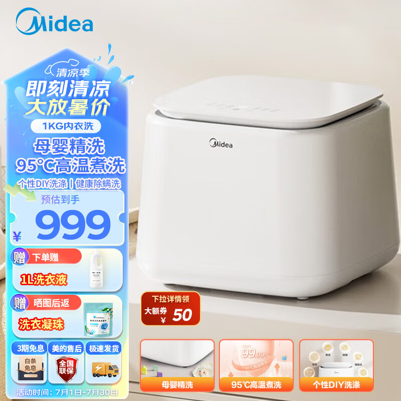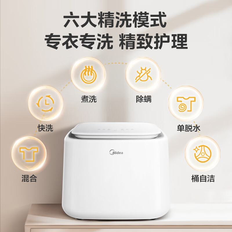 美的(Midea)1KG迷你波轮内衣洗衣机全自动 小型内衣裤洗衣机 婴儿洗衣机95℃高温杀菌 六大精洗模式MNB10VA0WE价格:999.00元!