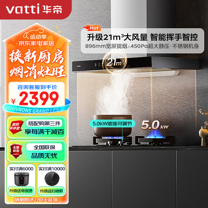 华帝(VATTI)抽油烟机家用排油烟机燃气灶烟灶套装21风量欧式顶吸吸油烟机灶具套装i11176液化气价格:2399.00元!