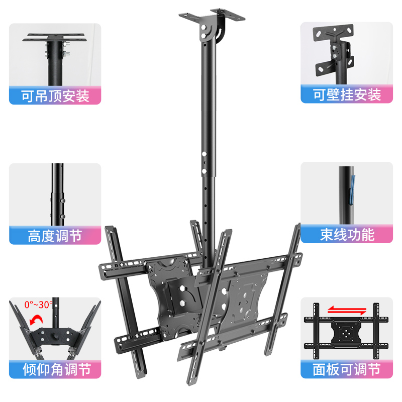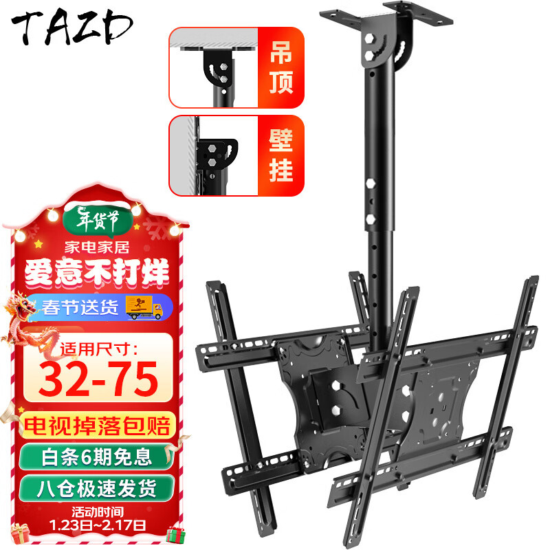 TAZD 电视吊架电视机壁挂旋转支架360度旋转吊架电视吊顶架天花板电视吊装挂架海信创维华为TCL 【32-75英寸】1.5米吊架双面承重角度调节价格:179.00元!
