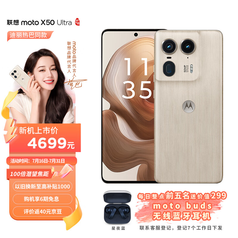 摩托罗拉 联想moto X50 Ultra 100倍潜望超级变焦 一体化机身 5G手机 AI元启版 16GB+1TB 香柏木价格:4699.00元!