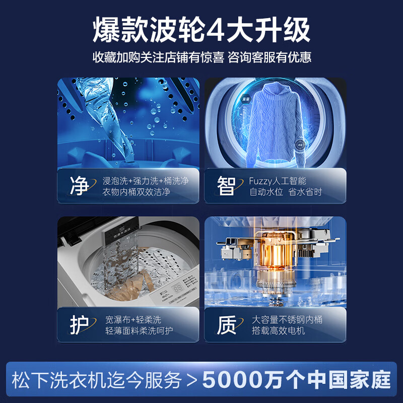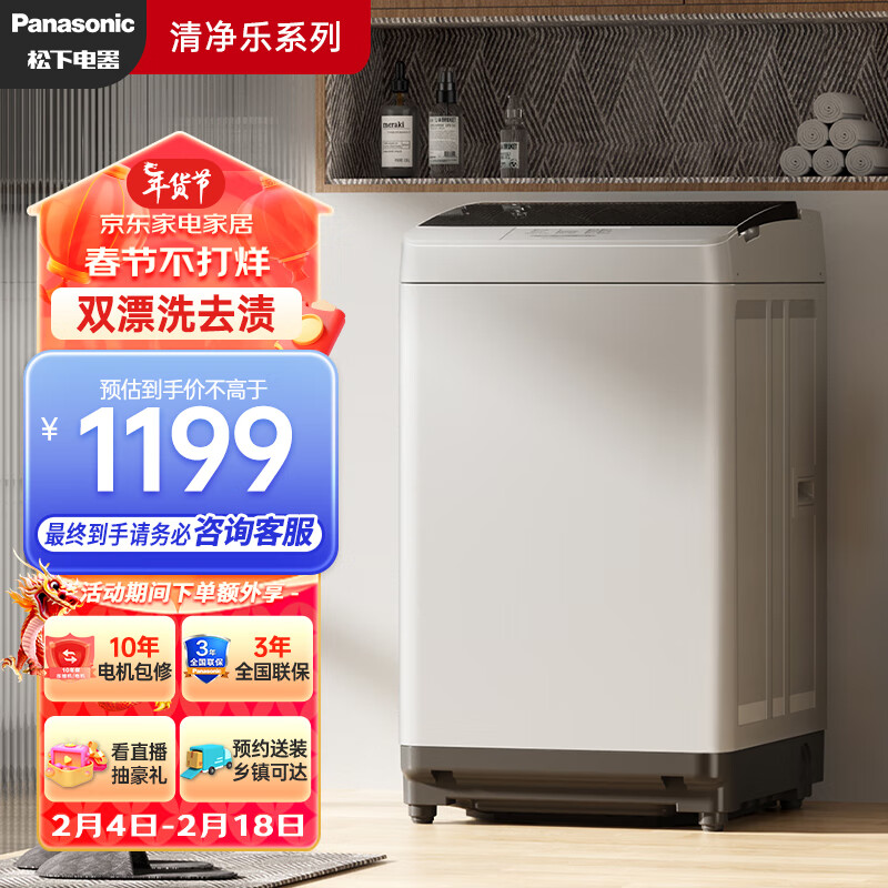 松下(Panasonic)波轮洗衣机全自动 桶自洁免清洗 耐脏宿舍租房 轻音省水电 8公斤 XQB80-3GTPS价格:1199.00元!