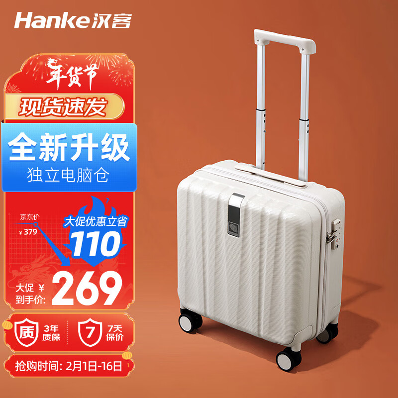 汉客行李箱男拉杆箱女登机旅行箱16英寸象牙白密码箱镇店之宝再次升级价格:379.00元!
