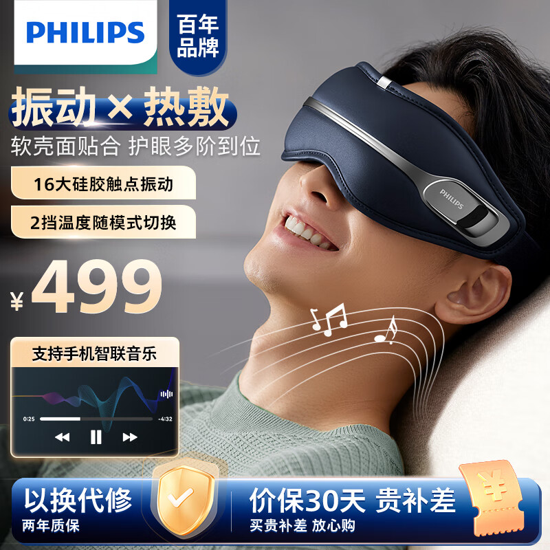 飞利浦(PHILIPS)眼部按摩仪 热敷睡眠眼罩 穴位按摩器 蓝牙护眼仪成人实用节日礼物送父母男女友3103E价格:499.00元!