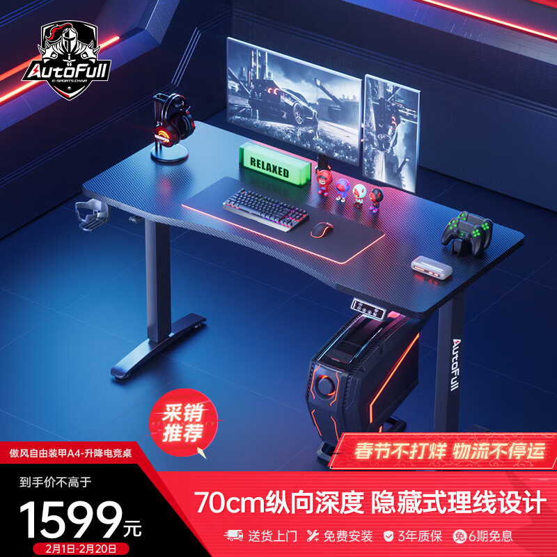 傲风自由装甲A4电竞电脑桌1.6m电动升降 台式游戏桌办公书桌学习桌子价格:1799.00元!