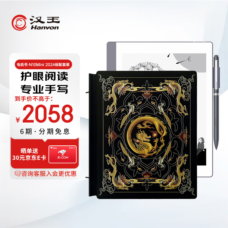 汉王(Hanvon)N10mini2024手写电纸本7.8英寸电子书阅读器墨水屏电纸书办公本敦煌联名款福寿龙保护套.套装价格:2058.00元!