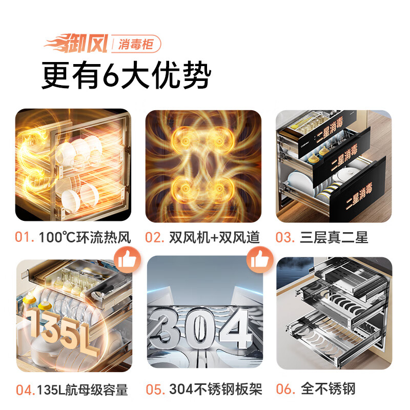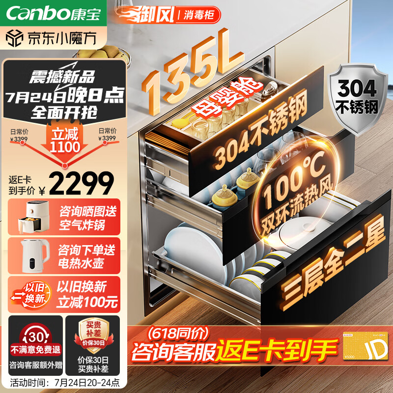 康宝(Canbo)135L御风磐石三层304不锈钢消毒柜嵌入式家用大容量餐具母婴奶瓶二星热风消毒碗柜XDZ135-ER751价格:2399.00元!