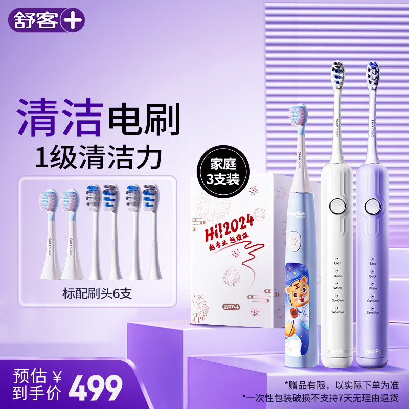 舒客电动牙刷智能1级清洁成人/学生送男友/女友软毛护龈180天续航G5羽白+雾紫+B32s蓝 父亲节礼物价格:599.00元!