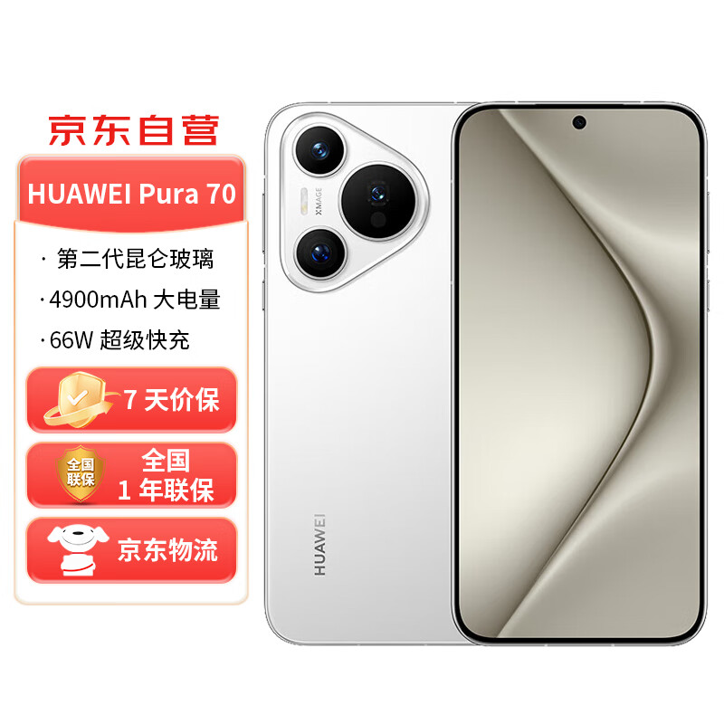 华为(HUAWEI) Pura 70 雪域白 12GB+1TB 超高速风驰闪拍 双超级快充 华为P70智能手机价格:11999.00元!