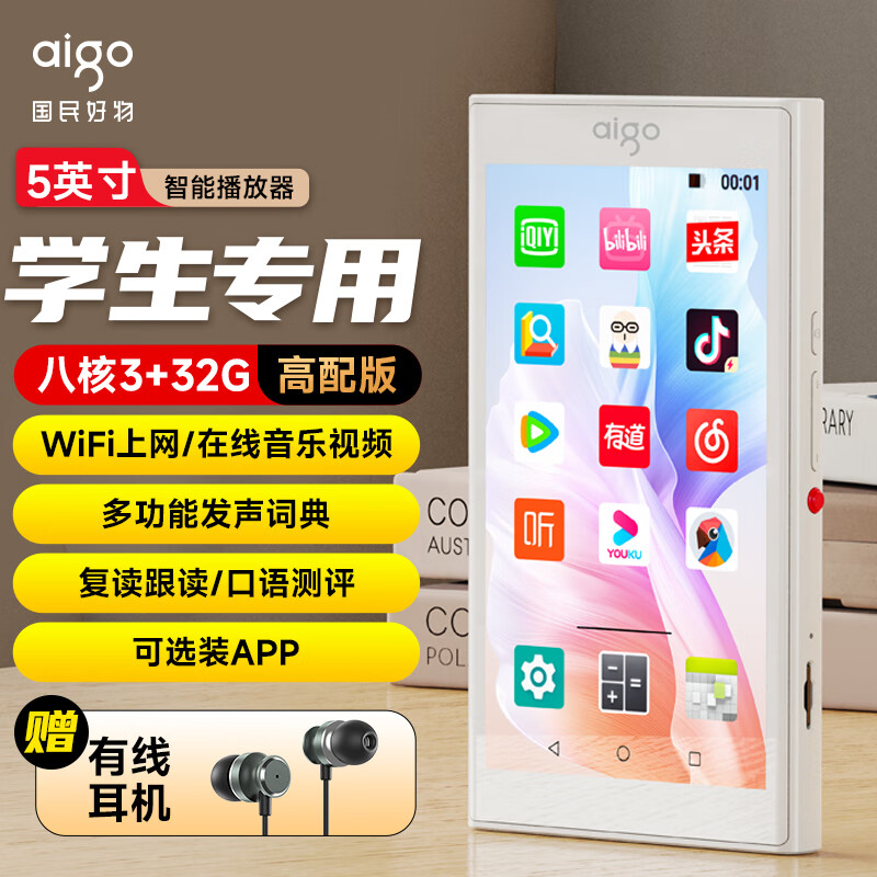 爱国者aigo 5英寸八核3+32G触屏mp3/mp4播放器WIFI可上网mp5学生视频蓝牙电子书词典音乐在线学习听歌价格:529.00元!