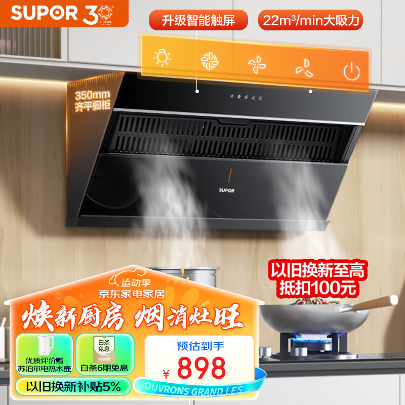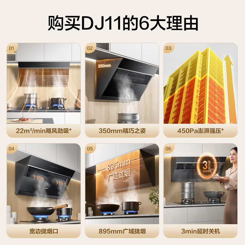 苏泊尔侧吸式抽油烟机 爆炒22立方大吸力 家用吸油烟机 450pa强劲风压油烟机 DJ11单烟机价格:899.00元!