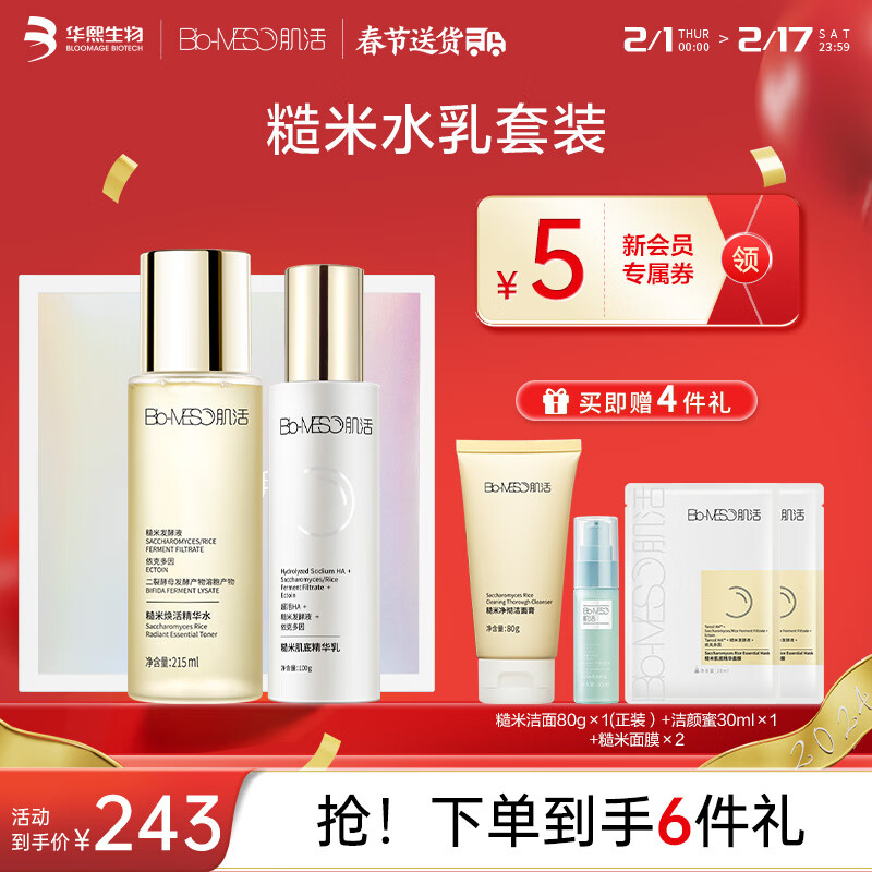 肌活(Bio-MESO)糙米水乳套装(水215ml+乳100g)护肤礼盒送女友情人节礼物价格:273.00元!