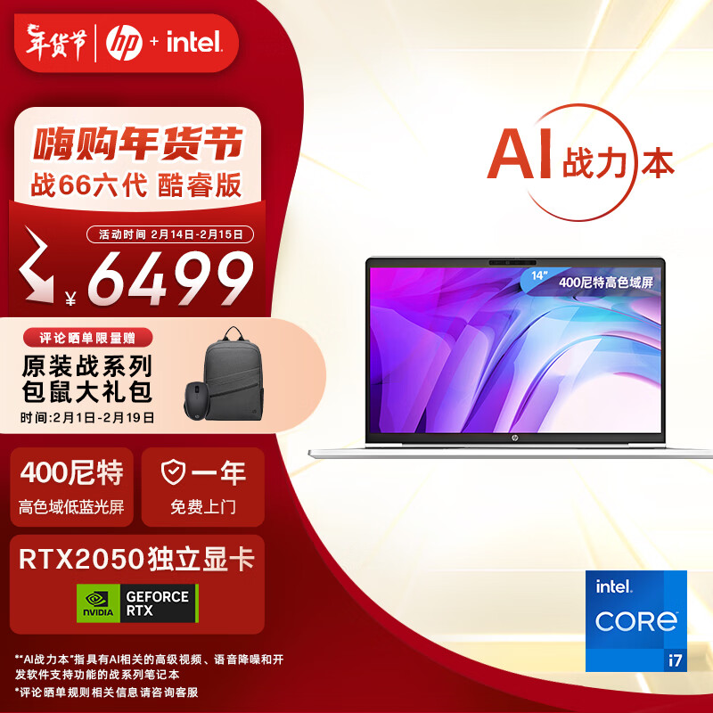 惠普(HP)战66六代酷睿14英寸轻薄笔记本电脑(英特尔13代高性能i7 32G 1T RTX2050高色域低功耗 AI一年上门)价格:6498.00元!