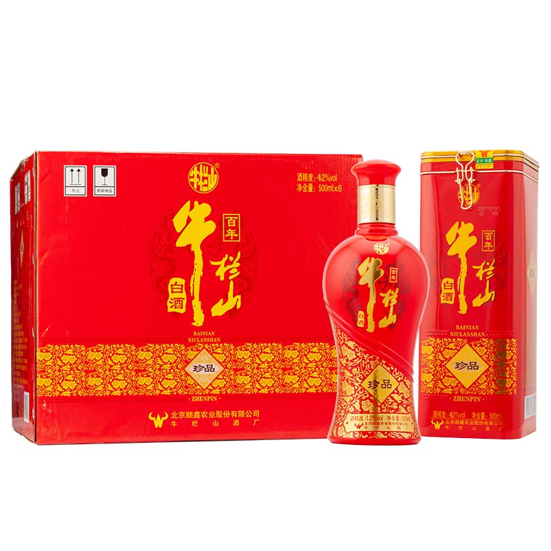 商品名称:牛栏山百年牛栏山珍品42度500ml*6瓶浓香型白酒礼盒整箱装铁盒版
