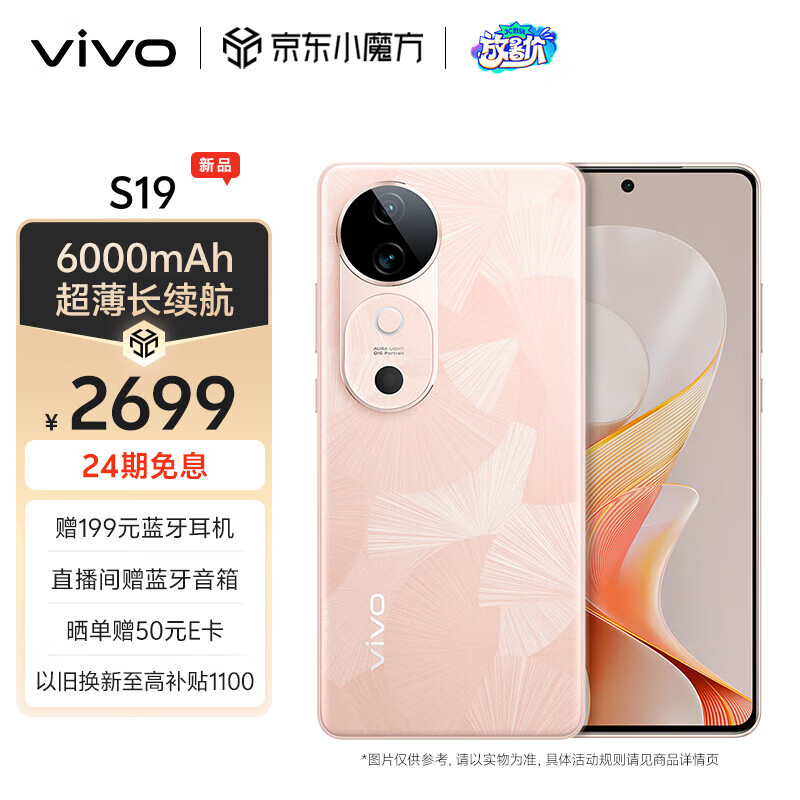 vivo S19 12GB+256GB 桃花扇 6000mAh超薄长续航 影棚级柔光环 百万跑分第三代骁龙7 5G 拍照 手机价格:2699.00元!