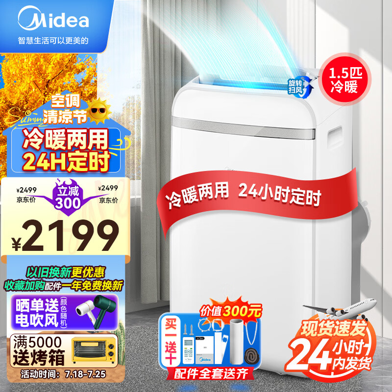 美的(Midea)1.5匹可移动空调冷暖一体机 家用厨房空调免安装免排水空调 KYR-35/N1Y-PD2价格:2299.00元!