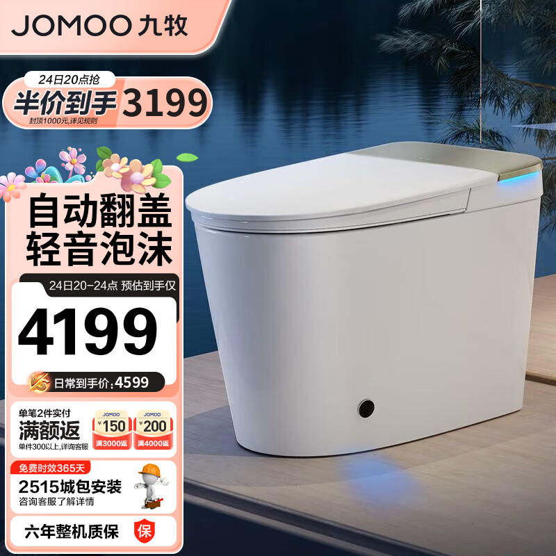 九牧(JOMOO)无水压限制智能马桶魔力泡低音冲自动翻盖坐便器ZS770P 305坑距价格:4649.00元!