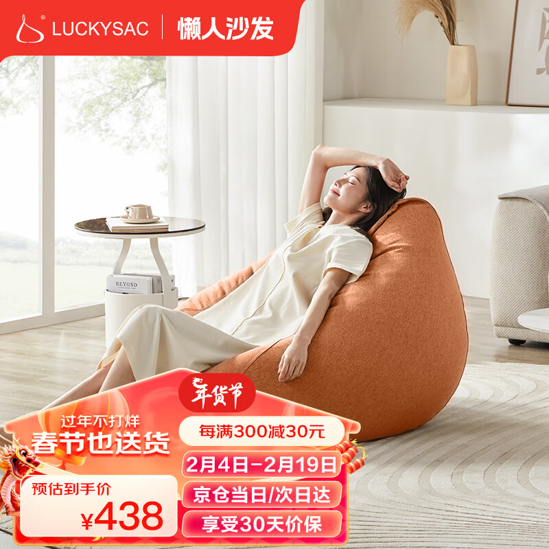 LUCKYSAC懒人沙发EPP豆袋 单人布艺客厅卧室阳台小沙发 舒适款柿子橙价格:468.00元!