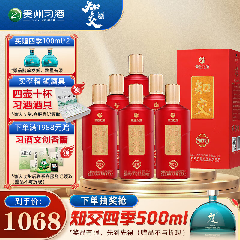 习酒知交 知行礼 酱香型白酒 53度 500ml*6 整箱装价格:1368.00元!