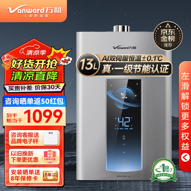 万和(Vanward)燃气热水器天然气家用智控水伺服恒温燃热【一级节能认证】省气微焰燃烧防冻小体积 13L 【JSQ25-ME5T13】价格:1799.00元!