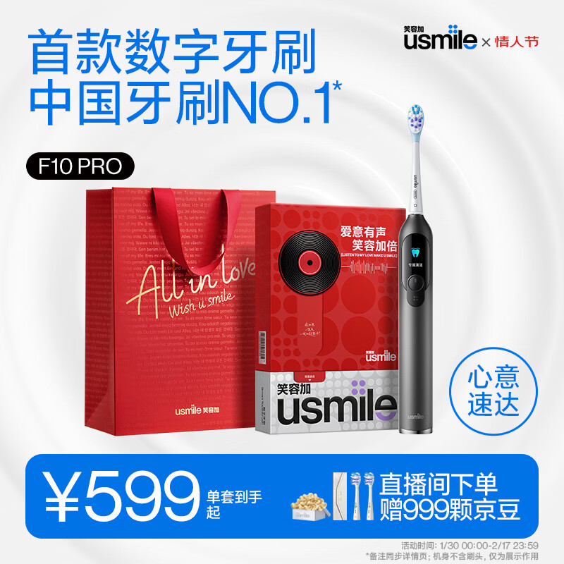 usmile笑容加电动牙刷 双面屏数字牙刷 成人情侣款礼物送男友/女友 F10 PRO曜石黑 新年情人节礼物价格:725.00元!