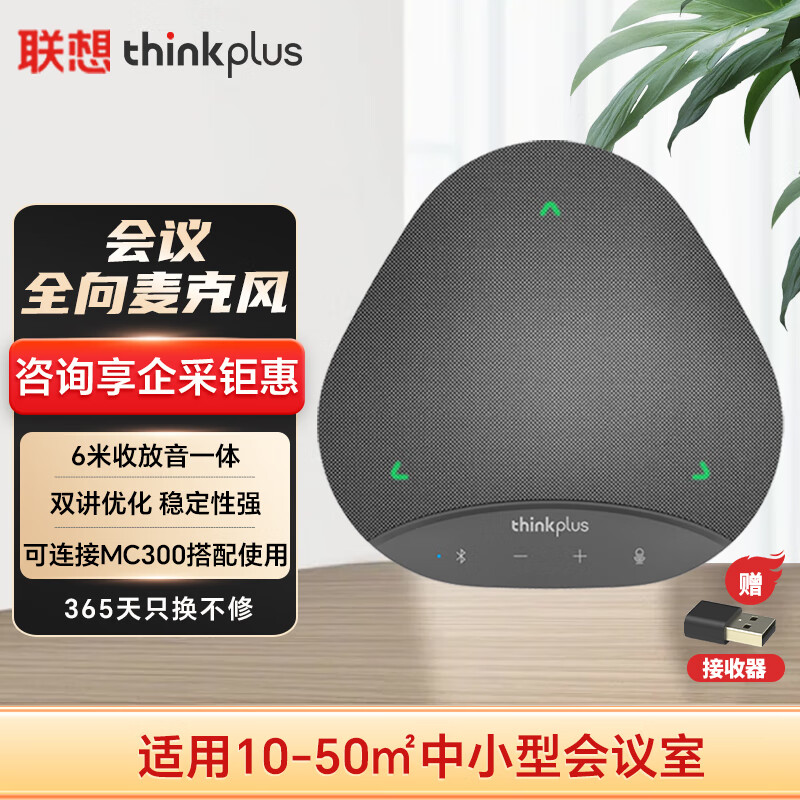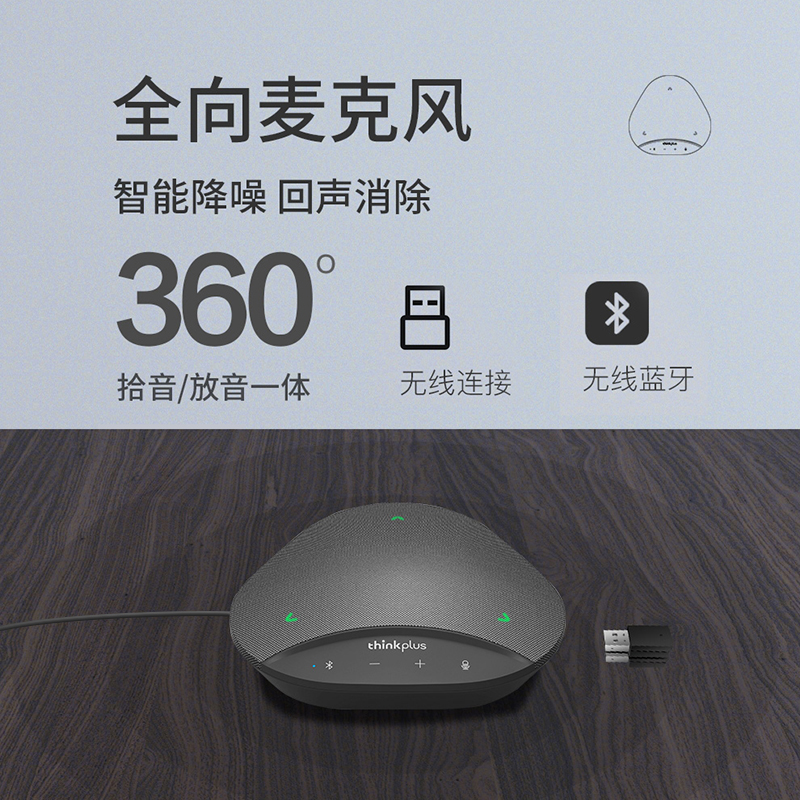 联想thinkplus视频会议全向麦克风无线蓝牙桌面扬声器音响适用50平米以内6米拾音器降噪音箱MK-MC500价格:1299.00元!