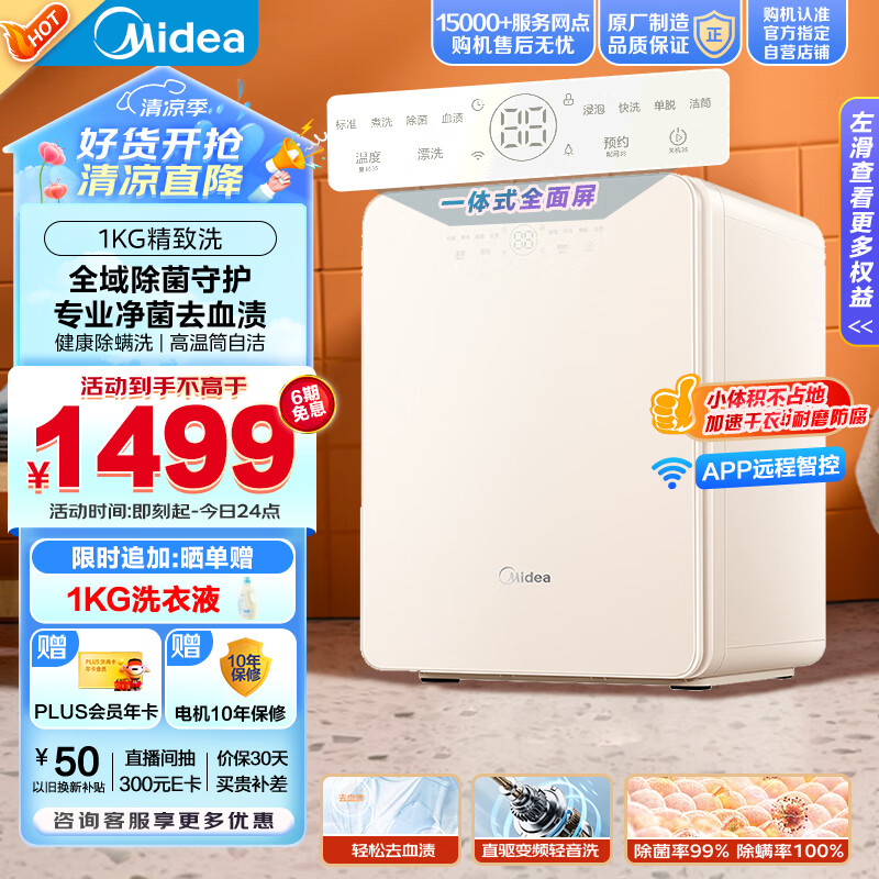 美的(Midea)1KG迷你滚筒洗衣机全自动家用 MNG10VDW0E 洗脱一体迷你舱 内衣裤洗衣机小型迷你洗衣机婴儿洗衣机价格:1499.00元!